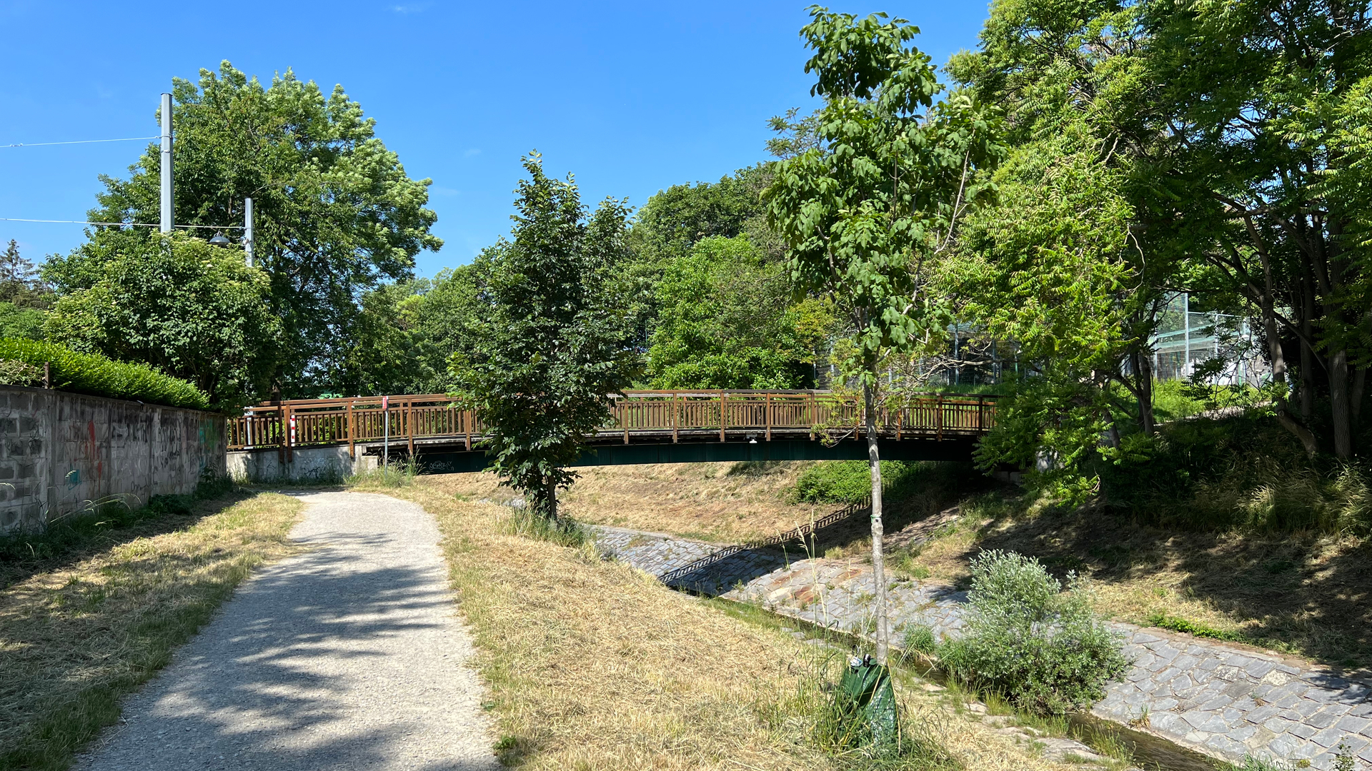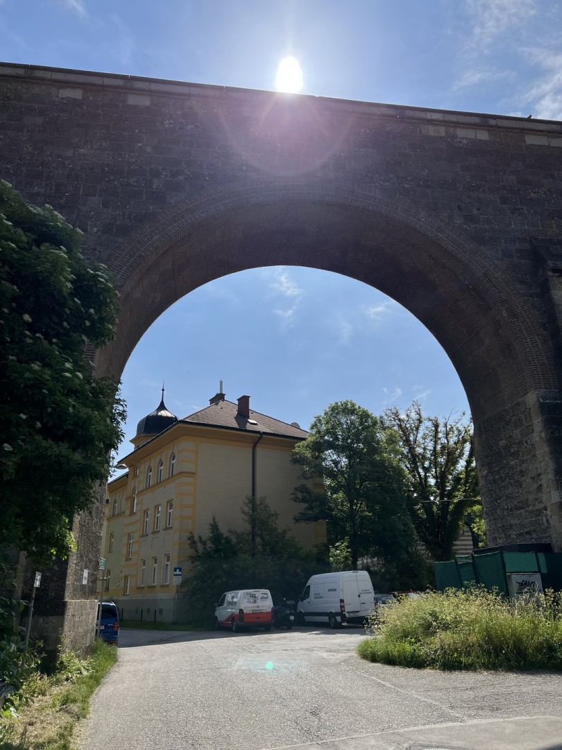 ... gehts unter dem Aquädukt der Hochquellenwasserleitung hindurch ...
