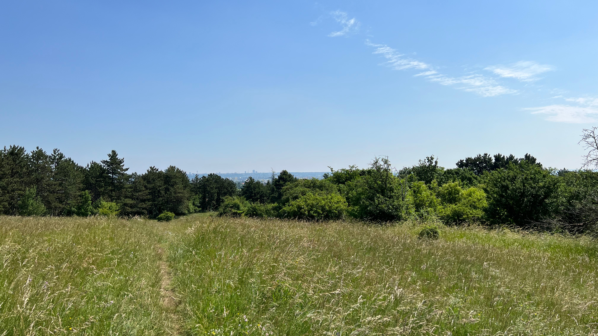 Es geht also die Perchtoldsdorfer Heide entlang; und zwar einen sichtlich weniger begangenen Weg und nach einigen schmalen Weglein durchs Dickicht ist man schließlich oben.
