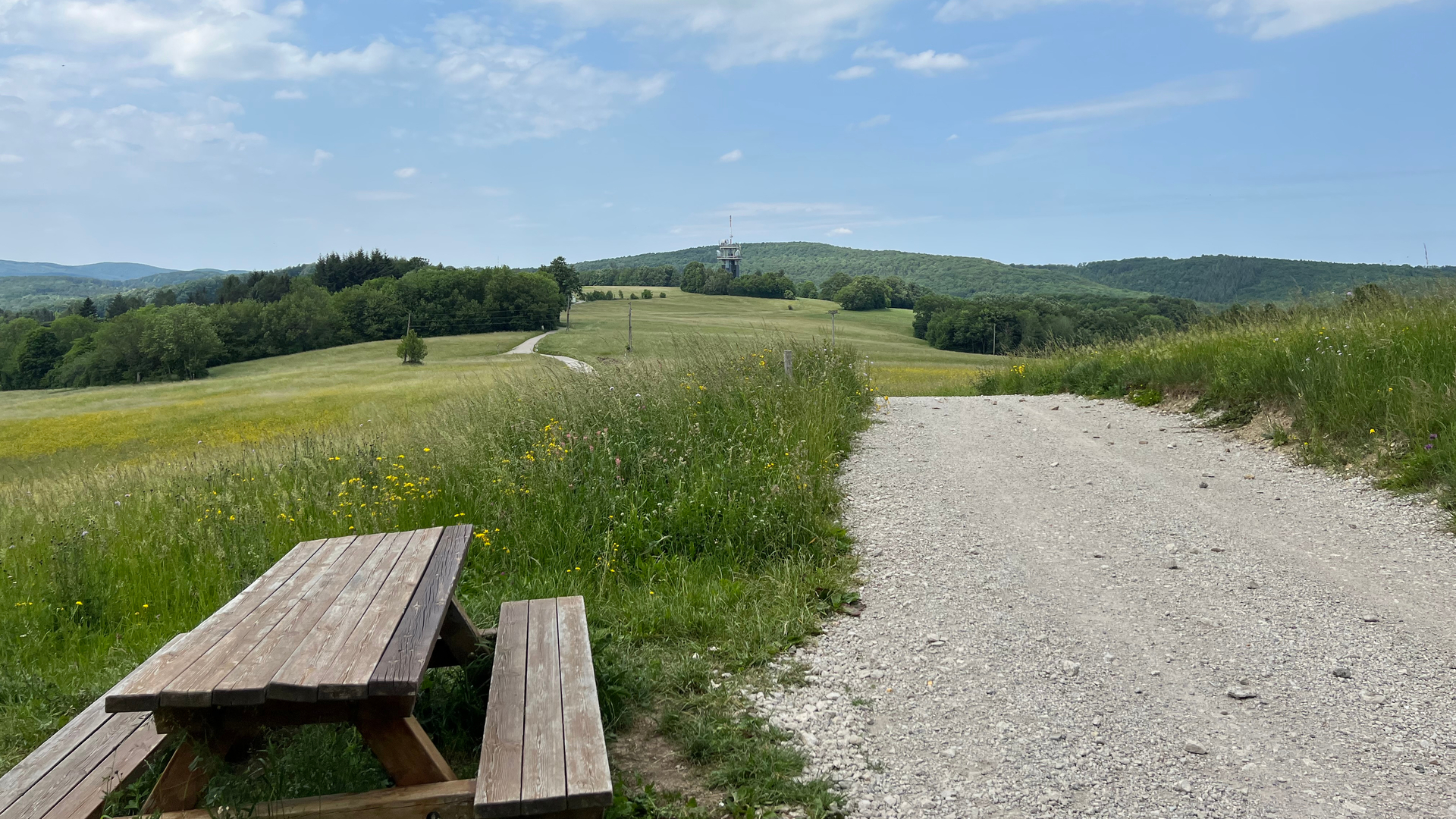 Letztlich verlässt der Reisende die Anhöhe auf der Sulzer Höhe noch vor Erreichen des Senders ...