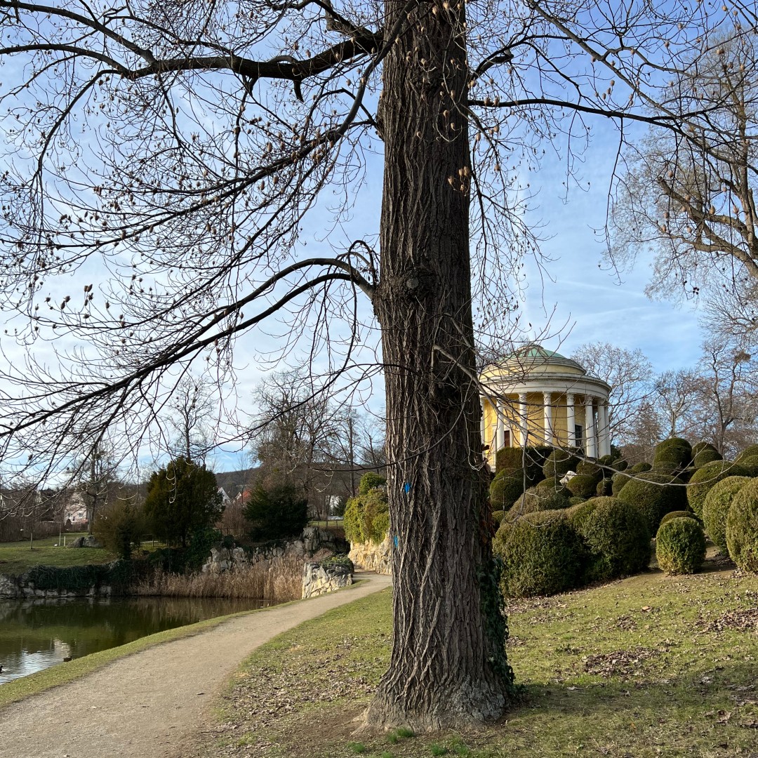 Es folgt ein Blick zum Leopoldinentempel, in welchem eine vom damaligen Schlossherr Nikolaus II. in Auftrag gegebene Statue seiner Tochter Leopoldine verweilen soll.