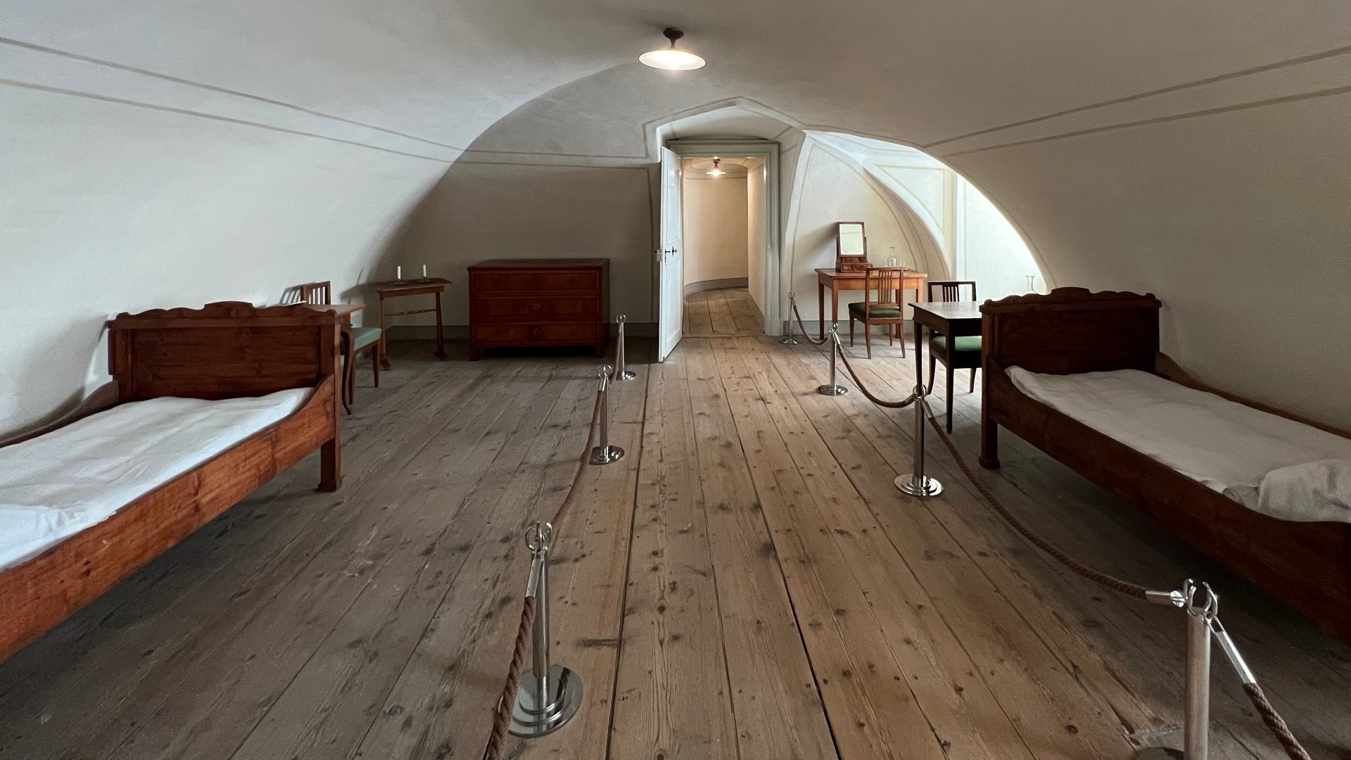 Im Halbgeschoss darüber werden die ehemaligen Räumlichkeiten der Dienerschaft vorgestellt, welche für damalige Maßstäbe sehr geräumig gewesen sein sollen. Es wird betont, dass die Esterházys Wert auf das Wohlbefinden des Gesindes gelegt hatten, mit dem Ansinnen, dieses längerfristig zu halten.