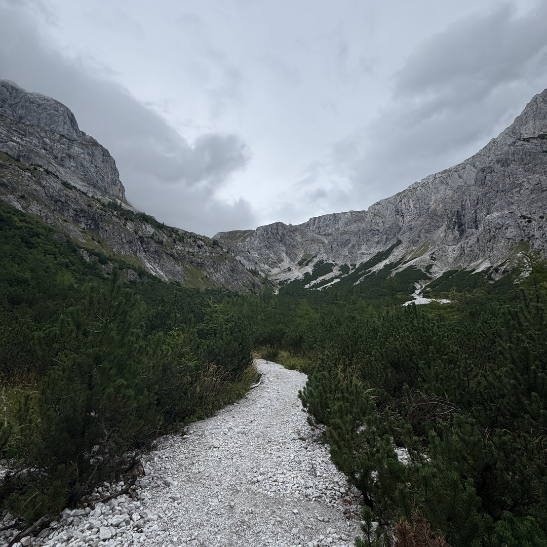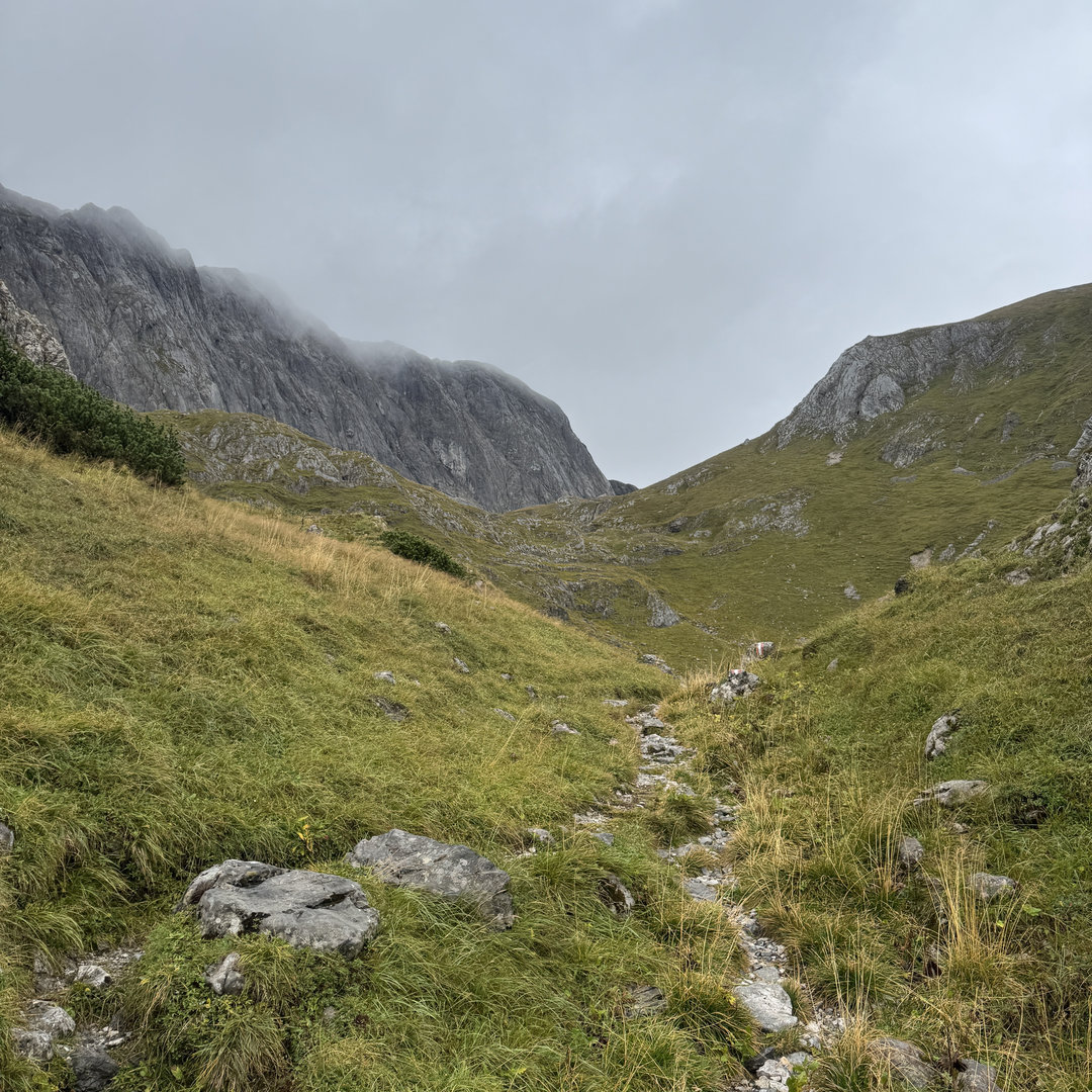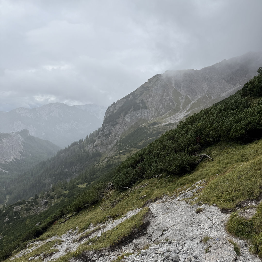 Eine kurze Weile führt der Weg recht gemütlich den Hang entlang, das Wetter wird ein wenig besser ...