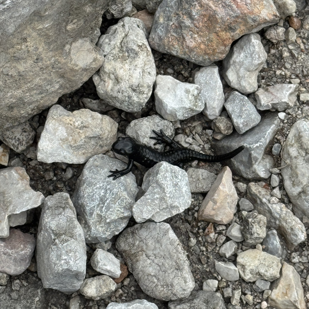 ... als der Fotograf einen kleinen Salamander am Weg findet.