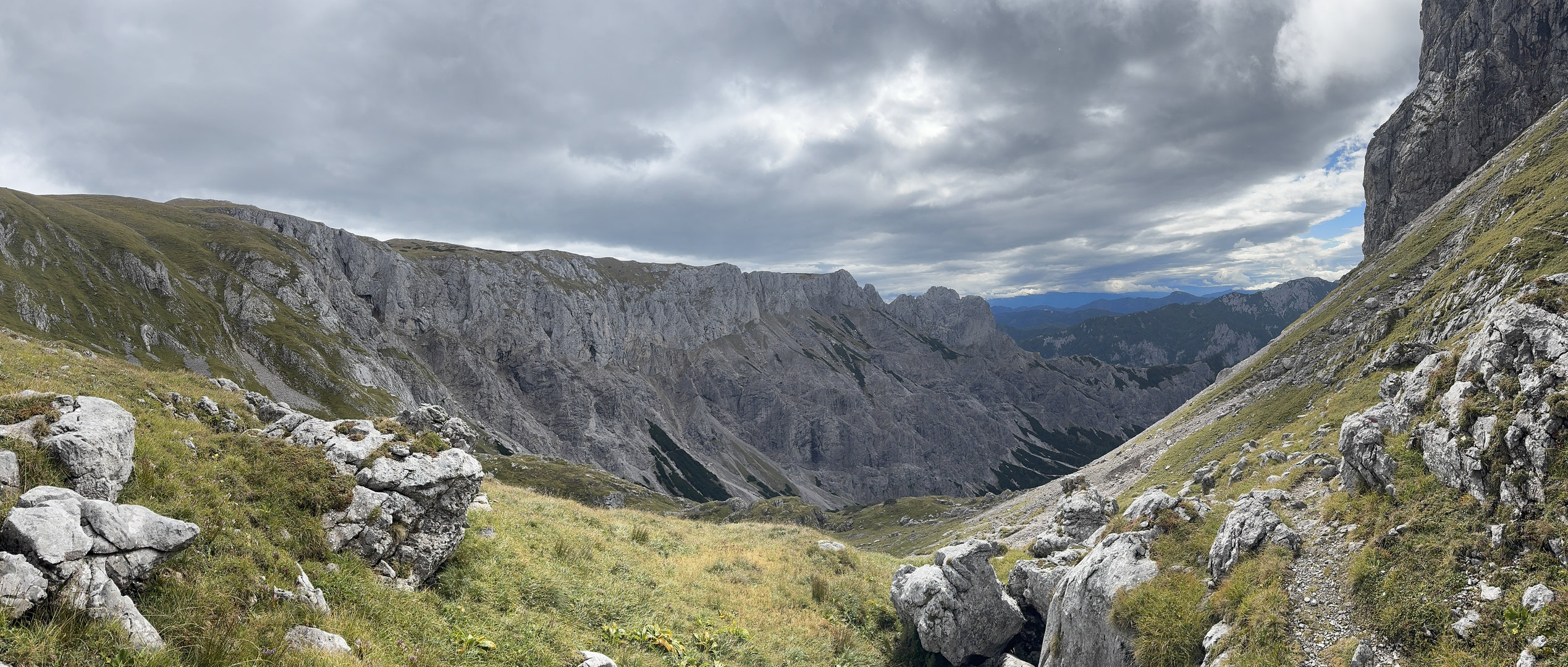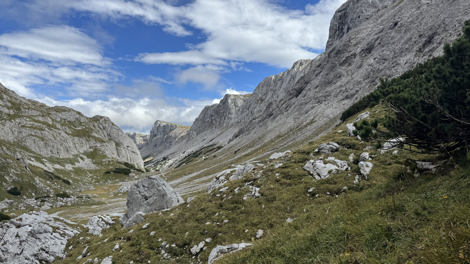 ... doch ehe man es sich versieht, erklimmt man den gegenüberliegenden Hang, wirft einen Blick zurück und freut sich über bereits kurz zuvor begangene Pfade.