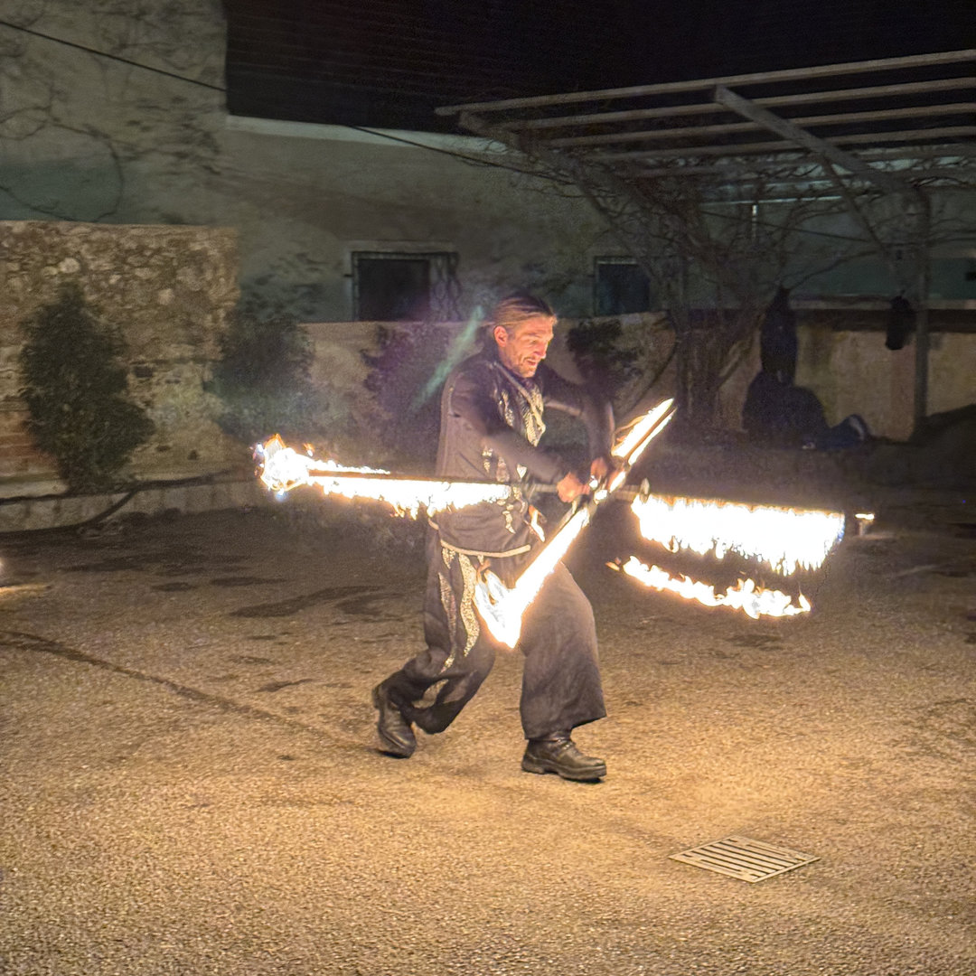 Nach einem kurzen Spaziergang durch die dem Reisenden schon bekannte Dürnsteiner Altstadt darf man eine bei einer Feuershow zusehen ...