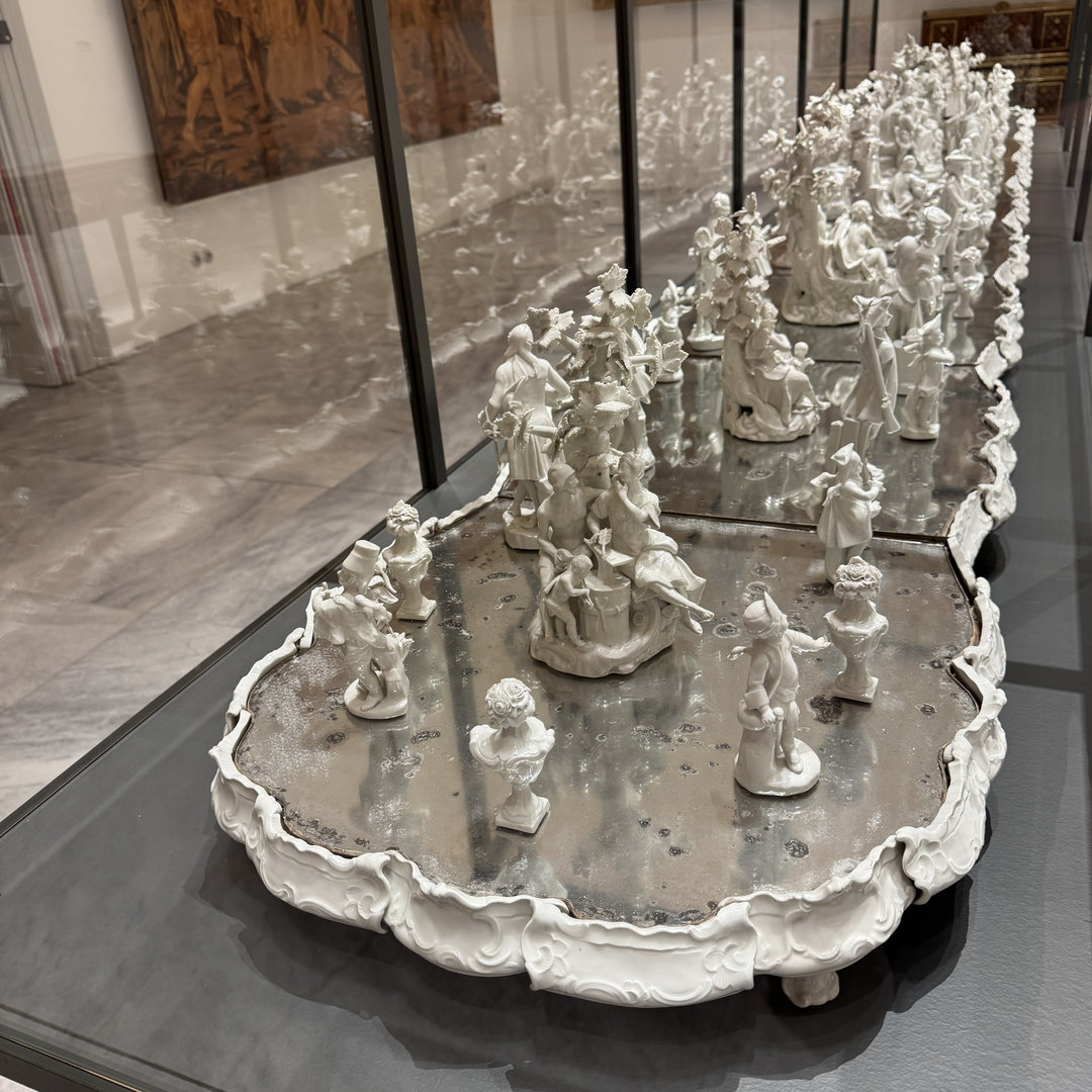 ... von der aus der Weg nach links zur Barockausstellung führt, in der es neben Figuren in einer Vitrine ...