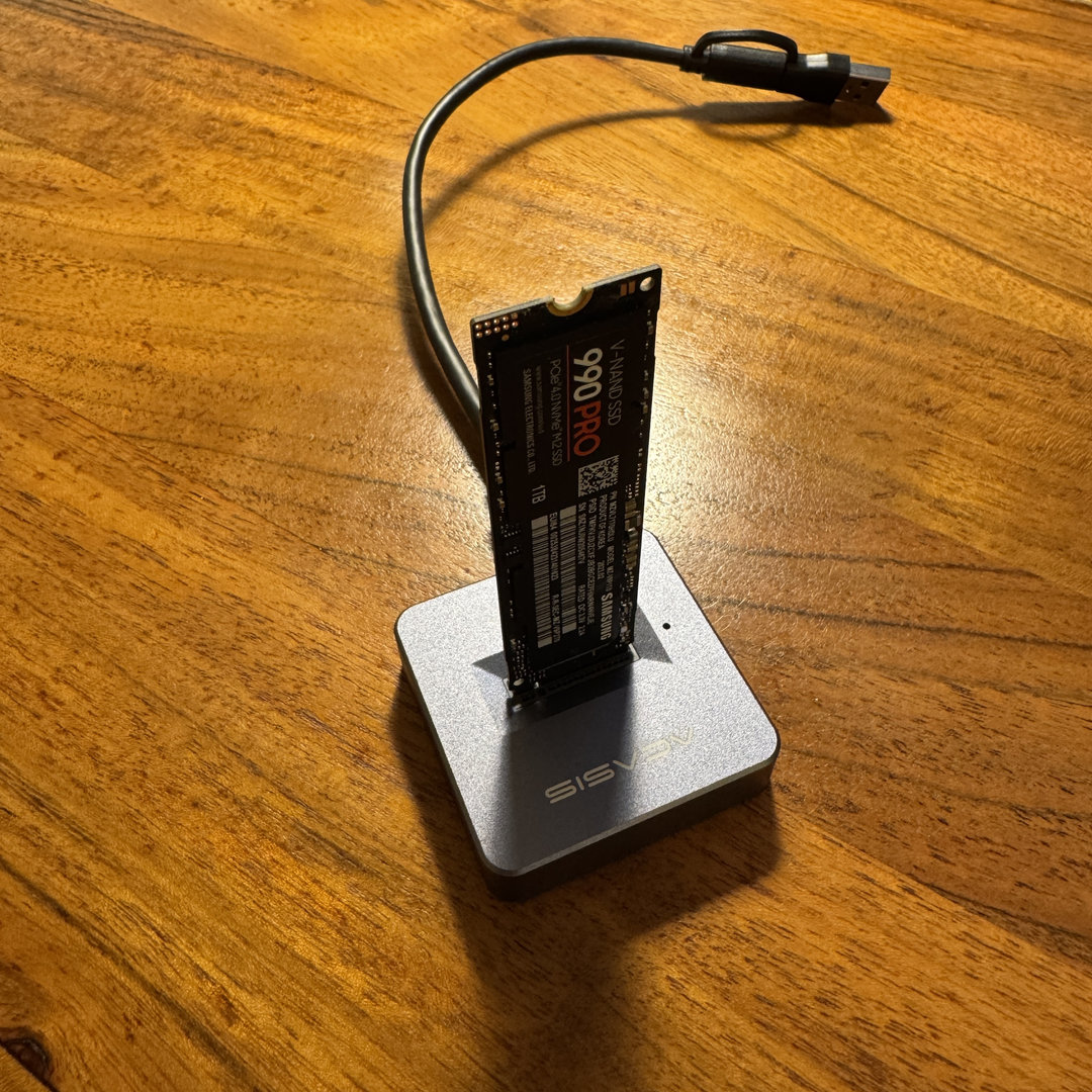 Man hat sich ein Argon NEO 5 Case zugelegt, welches man nach Anleitung zusammenbaut. Letztlich muss die SSD mit dem Raspberry PI OS befüllt werden, das erledigt man auf der Workstation mit dem Rasperry Pi Imager und einem Teil in der Bauart wie abgebildet.