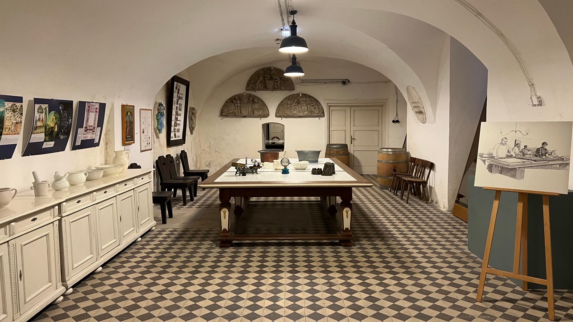 Im Halbgeschoss darüber werden die ehemaligen Räumlichkeiten der Dienerschaft vorgestellt, welche für damalige Maßstäbe sehr geräumig gewesen sein sollen. Es wird betont, dass die Esterházys Wert auf das Wohlbefinden des Gesindes gelegt hatten, mit dem Ansinnen, dieses längerfristig zu halten.