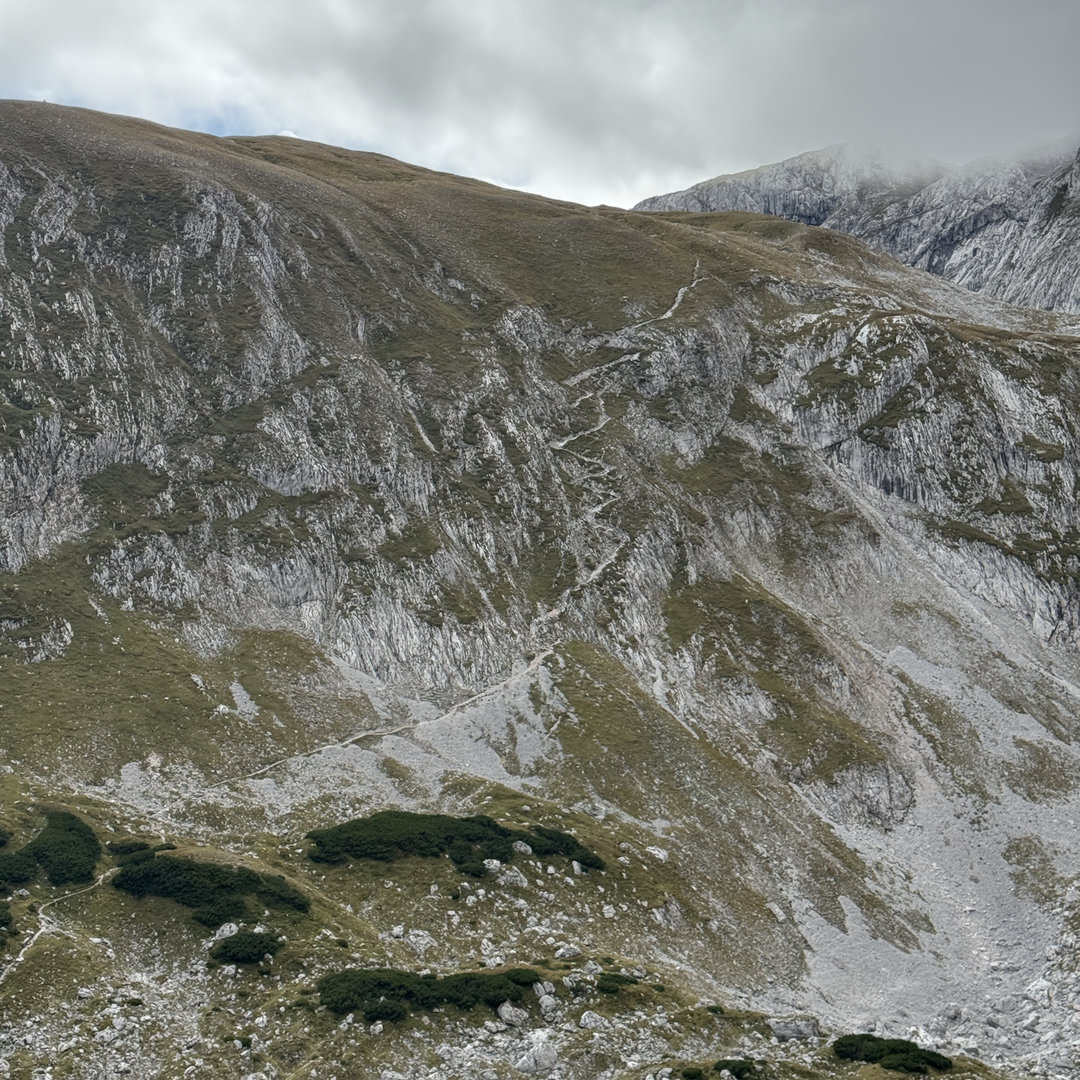 ... doch ehe man es sich versieht, erklimmt man den gegenüberliegenden Hang, wirft einen Blick zurück und freut sich über bereits kurz zuvor begangene Pfade.