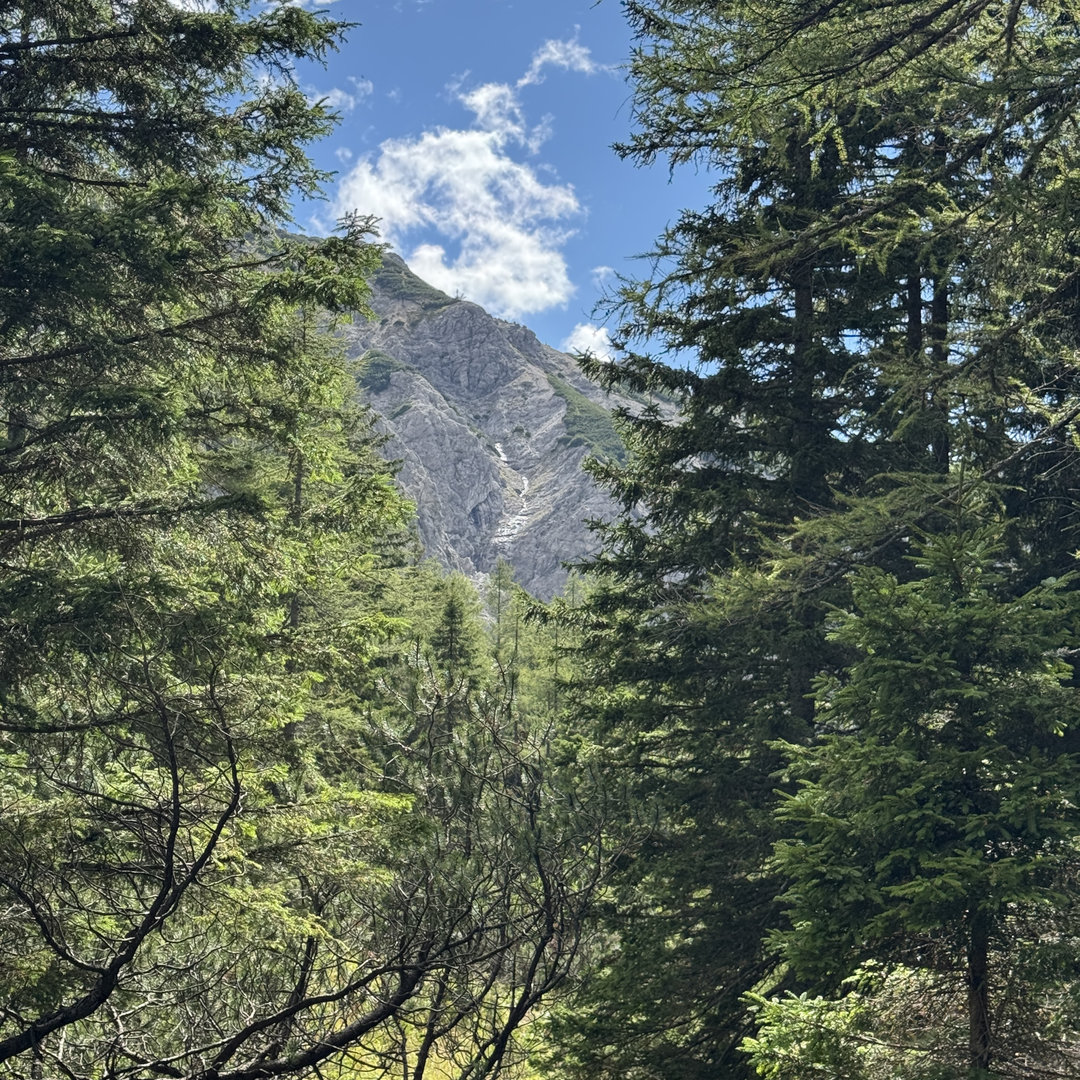 ... erreicht der Reisende wieder die - diesmal - sonnengeflutete Trawiesalm, wo ein Blick zurück geworfen wird.